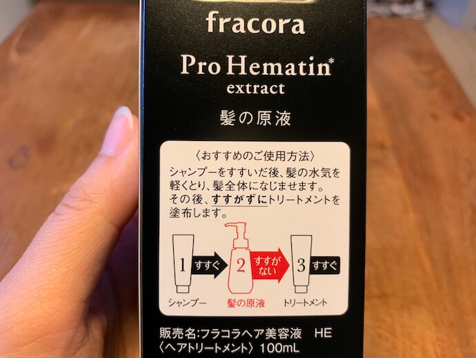 プロヘマチン原液を3、4プッシュほど馴染ませそのままトリートメントをつけるという